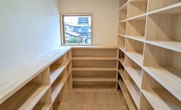 N様では壁一面に大きな書棚をつくりました。 現在のお住まいには蔵書がたくさあ…