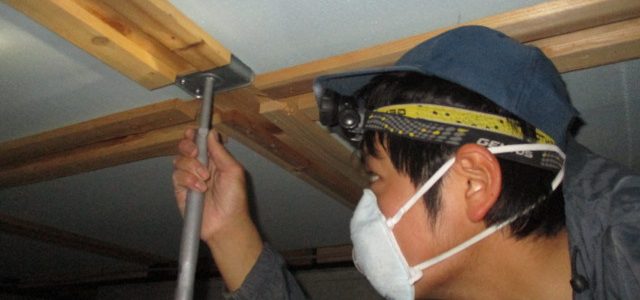 7年目の定期点検 2018-05-13 施工現場日誌 ご新築より7年を迎えたH様にて定期点検をさせていただきました。 一番大事な床下点検もさせていただいております。 監督の幸津君はいつものように狭い中でも機敏にチェックしていきます。 床組を支えている金物は鋼製束と言います。…