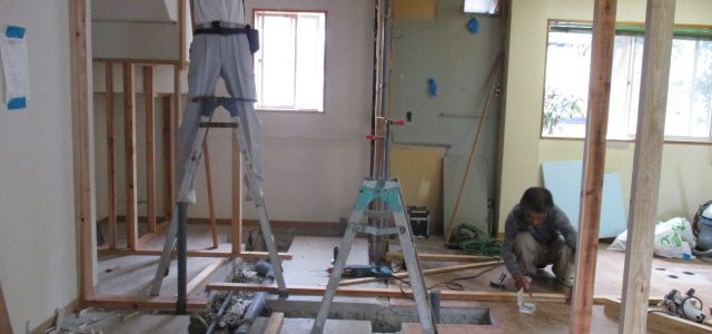 A様邸1F改装工事が始まっています。 2018-08-10 施工現場日誌 現場監督の幸津です(^^) 現場ではA様邸で1F改装工事が始まっています。 事務所だった所の間仕切を撤去して 新しくUBやキッチン・トイレを新設します。 以前の様子です。 全て整理してから、解体屋さんに 間仕…