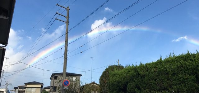 虹 2018-10-06 エムズの日常 こんにちは、齋藤です。 昨日あたりから、どこからともなく香ってくる金木犀。 思わず立ち止まりクンクン…どこから? 周りをキョロキョロ、 金木犀の香りが秋の訪れを教えてくれます。 あっ、そうじゃ、皆さん今朝の虹見ましたか? 家の2階か…