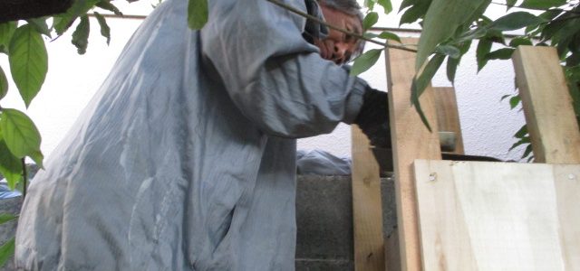 木々の中で… 2018-12-11 施工現場日誌 現場監督の幸津です(^^) さて問題です。 この写真の中の何処に職人さんが いらっしゃるでしょうか? そうです、真ん中の辺りに 型枠と共に写っています(^^)。 ブロック塀の控え工事の現場のことです。 型枠を組み…