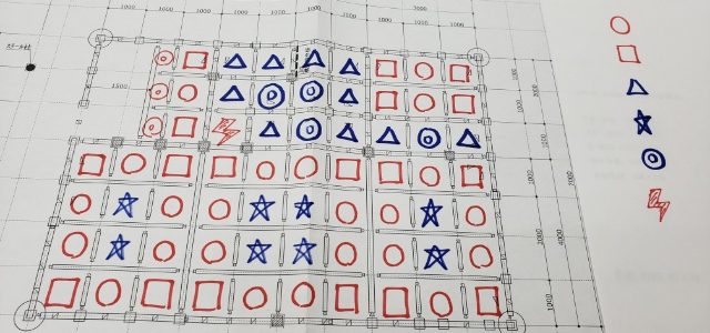 何の暗号?? 2019-03-12 エムズの日常 現場監督の幸津です(^.^)。 突然ですが問題です! さてこの図面は何を表しているでしょう? パズル?暗号…? いいえ違います(^.^) これは新築現場の床断熱材を敷き詰めるための 断熱材分配表です。 これが現場では…