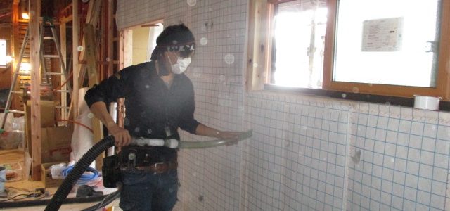 断熱材セルロースファイバー☆ 2019-06-24 施工現場日誌 徳島市T様邸 1階が会社で作業場から、リビングなどのお部屋へ大変身☆ 壁や天井には、セルロースファイバーの断熱材を沢山吹き込んでます。 天井が高い為、職人さんも大変ですが、丁寧に素早く一生懸命にして下さってます☆ 完成が楽しみですね☆…