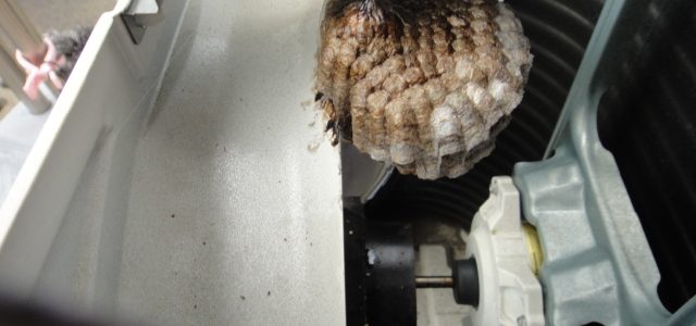 VSアシナガバチ 2019-08-01 施工現場日誌 最近、相次いでハチの駆除のご依頼をいただきました。 1件目のお宅は室外機の中にΣ(・ω・ノ)ノ! 2件目のお宅は換気口に(@ ̄□ ̄@;)!! こんな所にも巣を作るんですね!! どちらも無事駆除できました。 ハチをよく見かけるようになったら、近くに巣がある可能…
