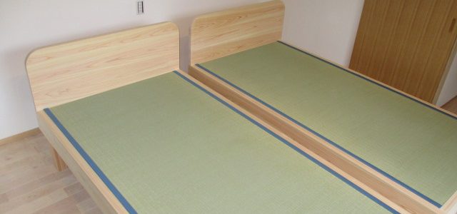 職人の技。vol.5 桧ベッド完成 2020-02-06 施工現場日誌 現場監督の幸津です(^^) 先日ご紹介した 桧ベッドが完成しました。 東野棟梁が製作したベッドに 畳屋さんが畳を 敷きこみました。 「棟梁の作った ベッドの枠の寸法が 両方とも1mmも誤差が無いので 畳をどっちとも入れ替えしても 大丈…
