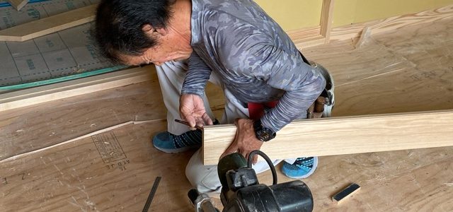 ”大工さん・左官さん” 2020-07-26 施工現場日誌 職人の技。 大工さんは窓枠の加工をしています。 切ったり、削ったりと杉材を自由に操る職人技を発揮!! 四方の隅をピッタリと合わせるのは神業です。 きつすぎても木が傷むし、ゆるければ隙間が出来そのさじ加減が絶妙です。 左官屋さんのコテ捌き…