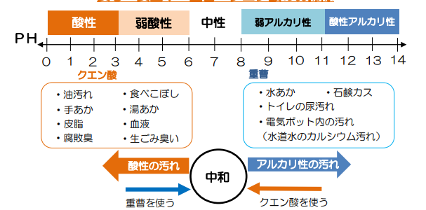 汚れ落とし 2020-12-21 施工現場日誌 「住まいのお手入れ」 汚れ落としの基本は「中和させること」です!! 酸性の汚れにはアルカリ性のものを使用する。逆にアルカリ性の汚れには酸性のものを使用すると効果が高いのです。 クエン酸と重曹の二つを使用することで…