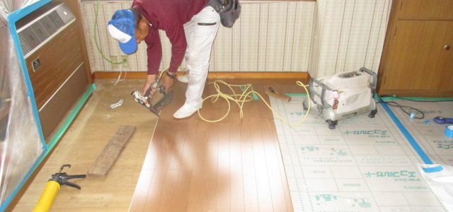 床張り替え工事を行いました。 2021-07-09 施工現場日誌 現場監督の幸津です。 現場では廊下・ 洋室床張り替え工事を 行いました。 以前の様子です。 床の絨毯は30年経ち、 経年劣化でボロボロです。 絨毯をはがして、 下地がしっかりしていたので その上にフローリング材を 張りました。 (…