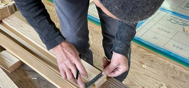 職人の技 2022-01-08 施工現場日誌 エムズの木の家は職人さんの技を発揮するところが随所にあります。 今、宮竹大工さんは引き戸枠の製作中です。 杉の木を丁寧に切り、削って、サイズを合わせて組み立てます。 大工さんの腕の見せ所です。 角と角がピッタリと合わなければいけません…