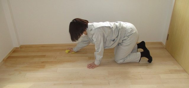 床仕上げ 2022-03-11 社長 修ちゃん日記 床は無垢のメープルです。 いよいよ工事も終盤に近付きました。 今日は監督の山本と設計アシスタントの米田の二人で 蜜蝋ワックス塗りをしました。 エムズではこのワックスがけはスタッフ、監督の仕事と決めています。 腰をかがめて一生懸命に…