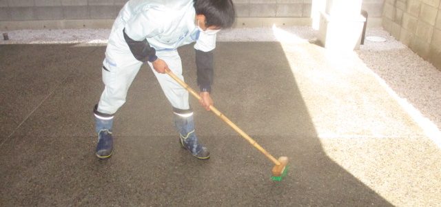 駐車場塩酸仕上げを行いました。 2022-03-16 施工現場日誌 現場監督の幸津です(^^) 新築現場では外構工事も 仕上がり、お引渡しを 待つのみになりました。 今日は駐車場の 土間コンクリートを 洗い出しの仕上げに 塩酸でセメント洗いを 行いました。 白い部分も綺麗になりました。…
