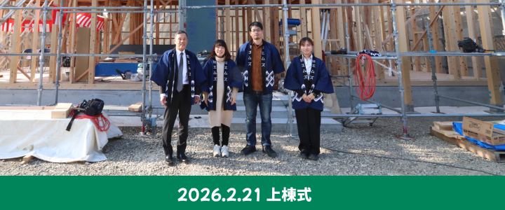 上棟式が執り行われました! 2026-02-27 施工現場日誌 こんにちは!スタッフの野田です。 先日、S様邸の上棟式が執り行われました。 大自然の中、小鳥のさえずりに交じり、木槌の音が響きます。 上棟式は無事に棟が上がったことを神様に感謝し、これからの工事の安全とS様の弥栄を願います。 神…