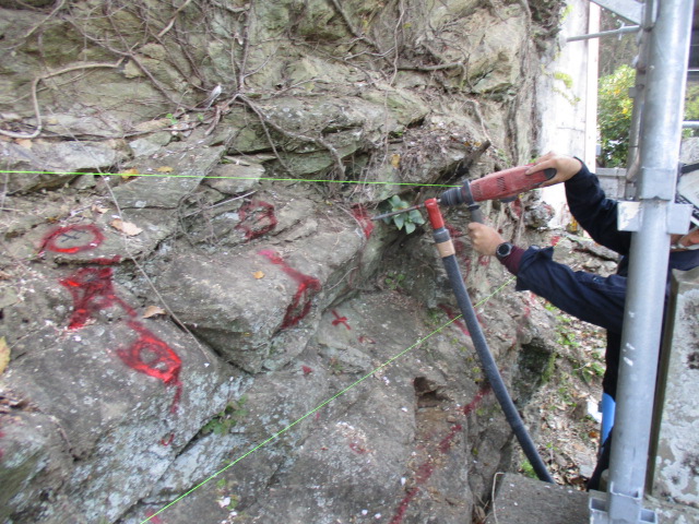 安全にしっかりと! 2020-04-12 施工現場日誌 山腹崩壊危険防止の為の工事をしています。 切り立った断崖が今にも崩れてきそうです。 しっかりとした岩盤に鉄筋アンカーを固定し てコンクリートと岩盤と一体化させます。 岩盤に穴を開けてケミカルという注入材と共 に鉄筋を差し込みます。このケミカルは特殊 な接着剤で岩と鉄筋を強固に一体化します。 鉄筋を張り巡らせて、コンクリートで固めま す。 難作業ですが危険防止の為に十分な施工をし ていきます。 YouTube「お施主様インタビュー」はこちら↓ お施主様からのお手紙やインタビューはこちら↓ 施工例はこちら↓ Follow Us Instagram↓