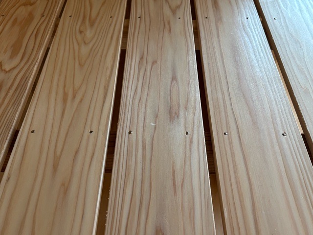 布団を置く底板には杉板を使いスリット状に隙間を設けて通気性を良くしています。