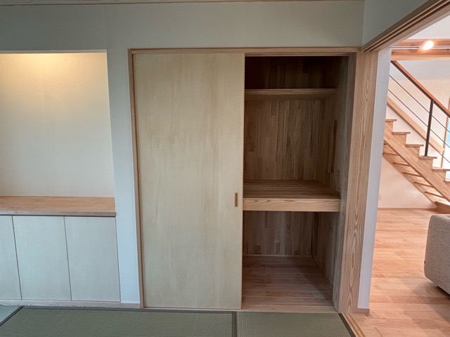布団などを仕舞う押入れなども壁には桐板を張ります。
