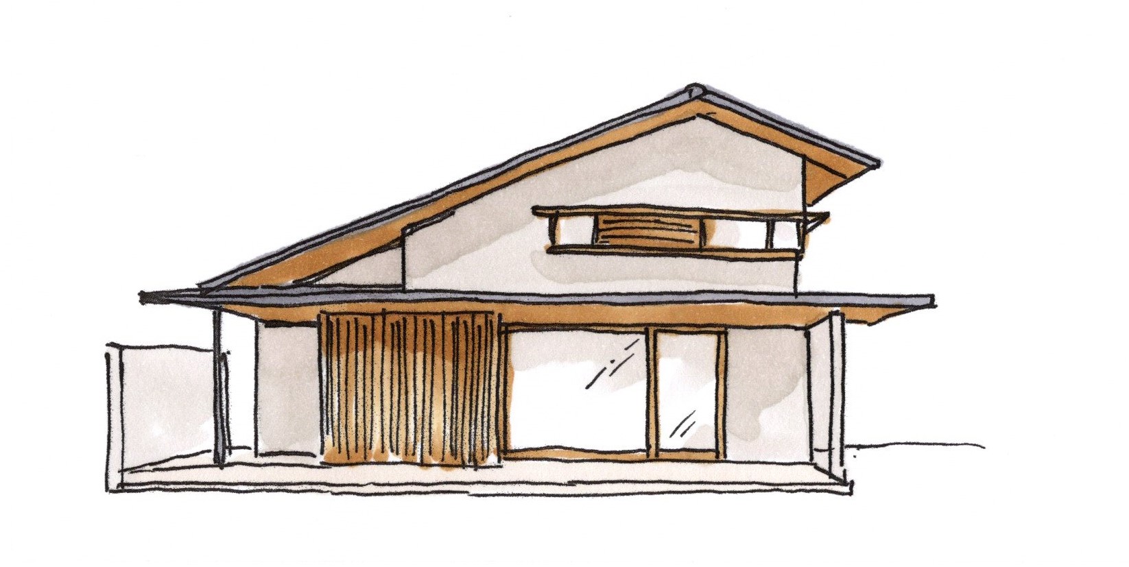 理由は、化粧スレート屋根や瓦屋根は施工の関係上ある程度の屋根勾配が必要となりますが、ガルバリウム鋼板は緩い屋根勾配でも使用可能なのでデザインの幅が広く、特にシャープさを出したい時などモダンな雰囲気の住宅をつくるときにはベストの選択と言えます。