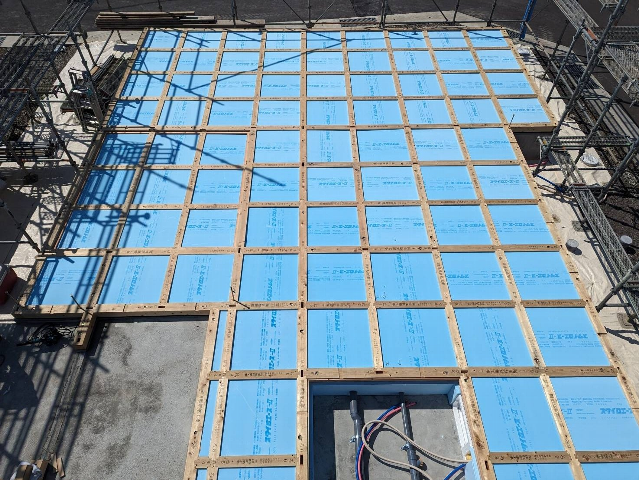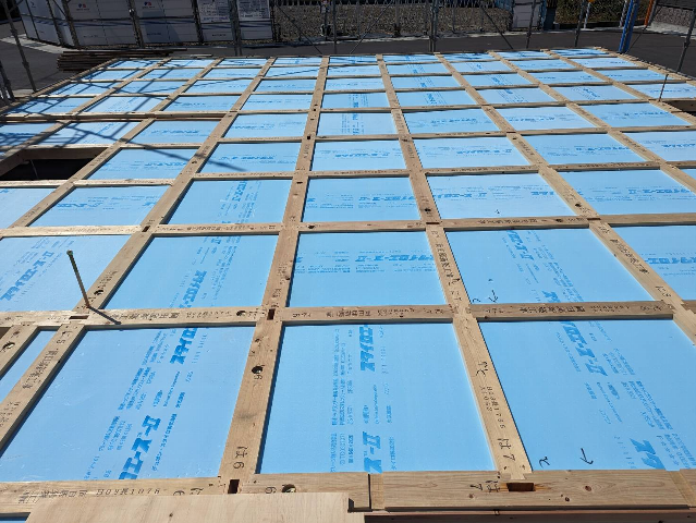 床下全面にしっかりと高性能断熱材を敷き詰めます。