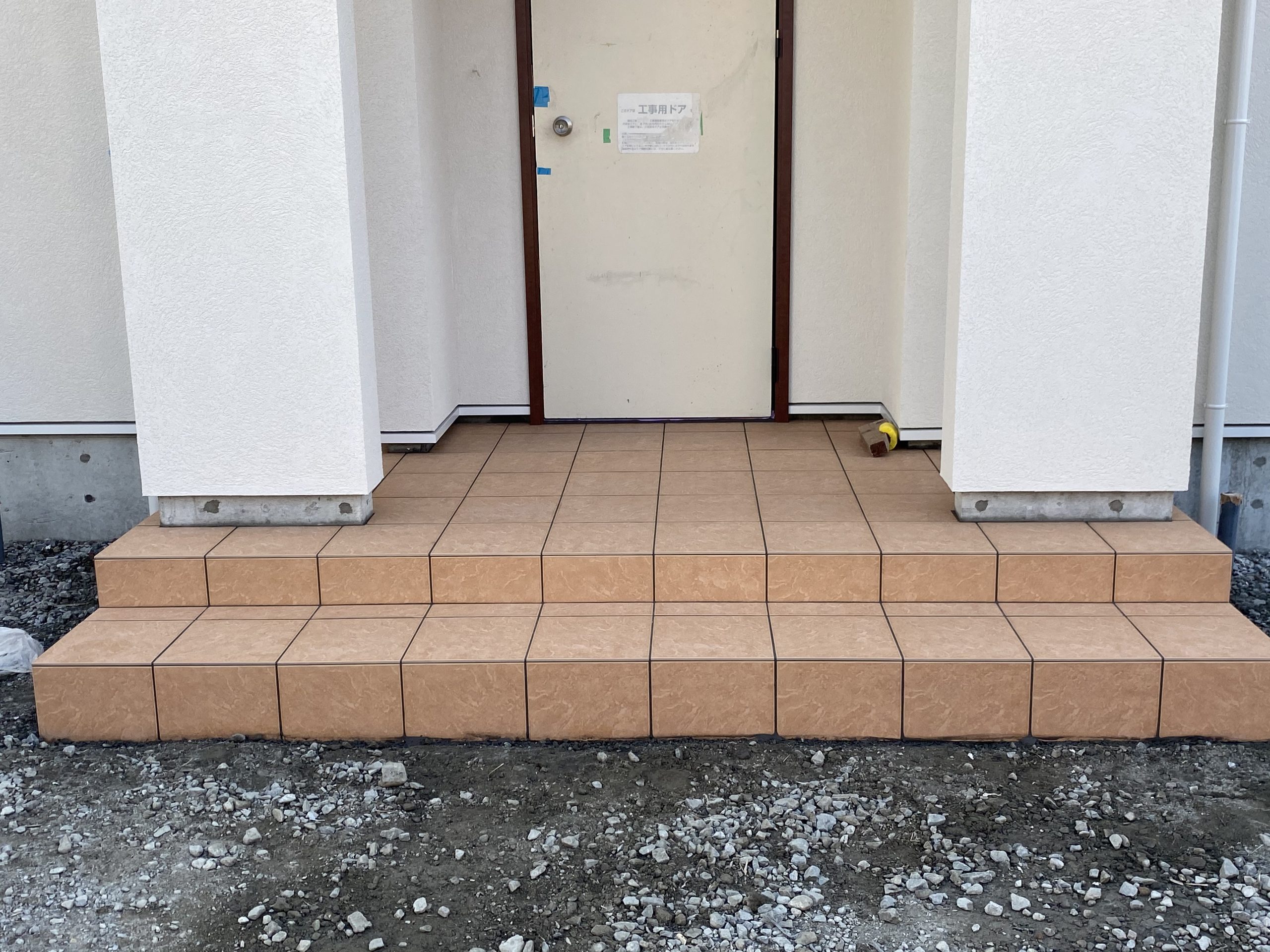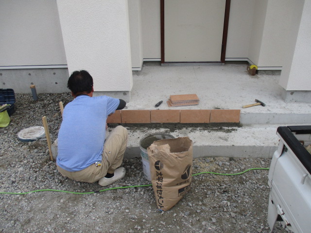 玄関ポーチにもきれいなタイルを張りました。