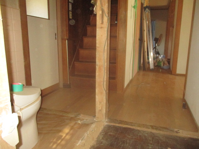 階段の前にはトイレがありました。