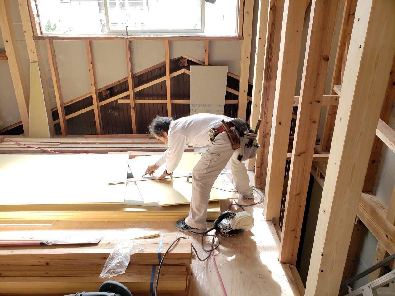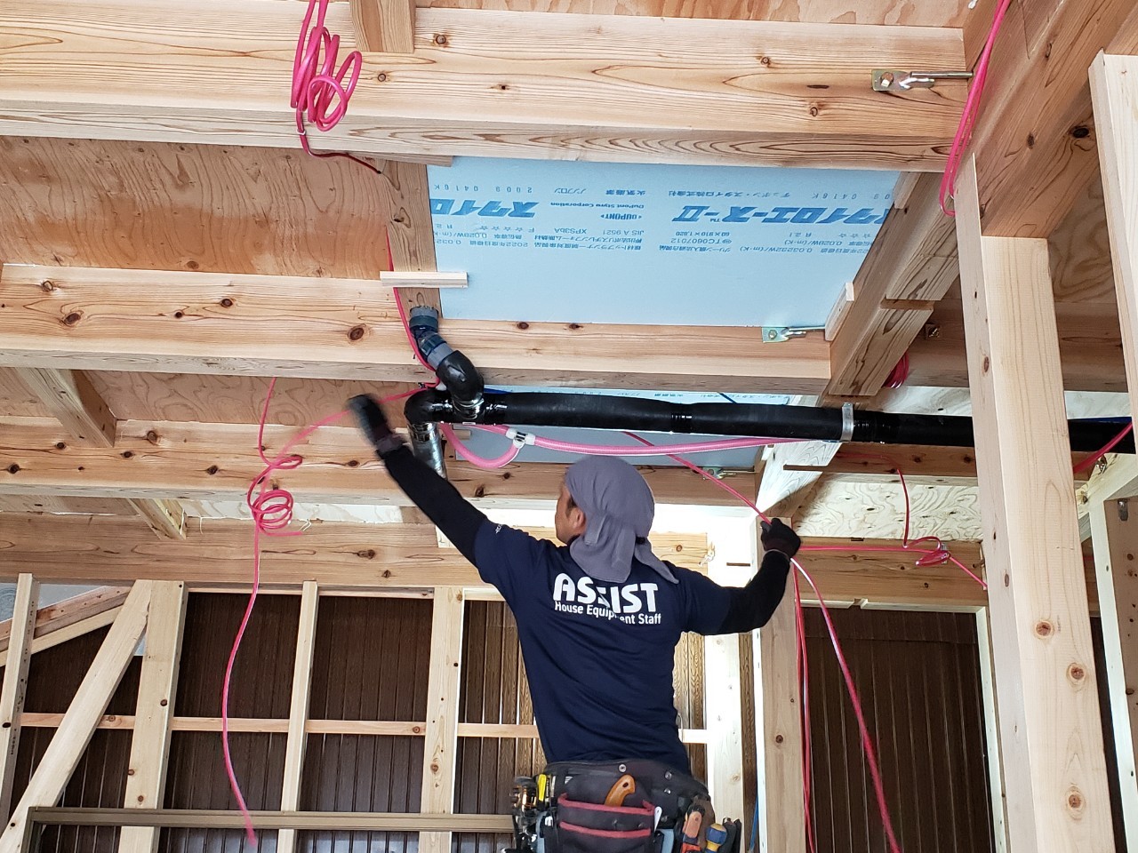 鴨島の現場では電気配線工事や棟札の取り付けをさせて頂きました。