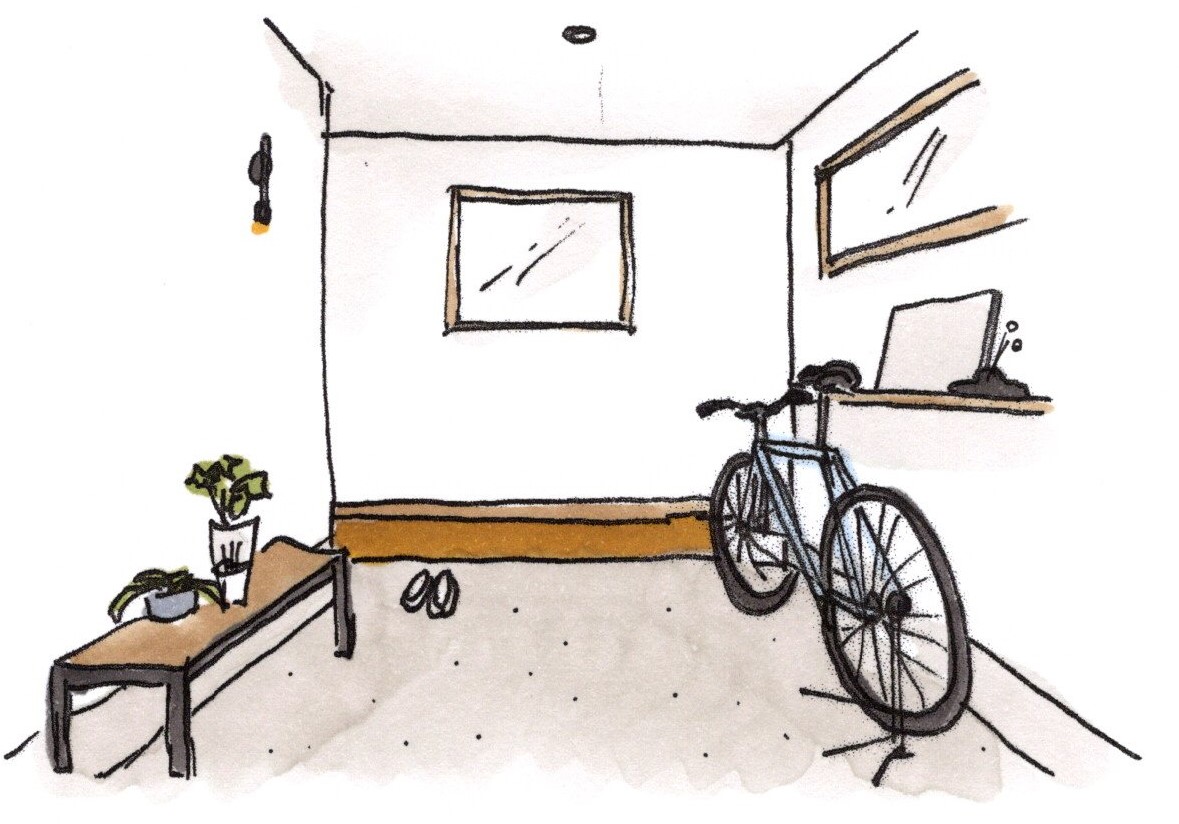 最近では高級な自転車も多いので、広い玄関土間をつくってそこに自転車を置く方は年々増えているように感じます。