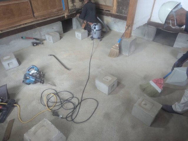 解体後床下の下地組、スタイロエースという