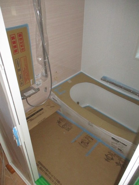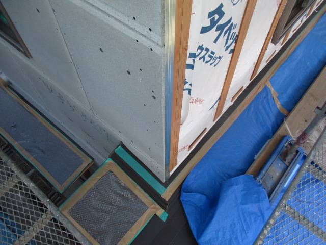 UBも据え付け出来ました。 外壁も張っています。 通気が外部の胴縁と呼ばれる下地材と