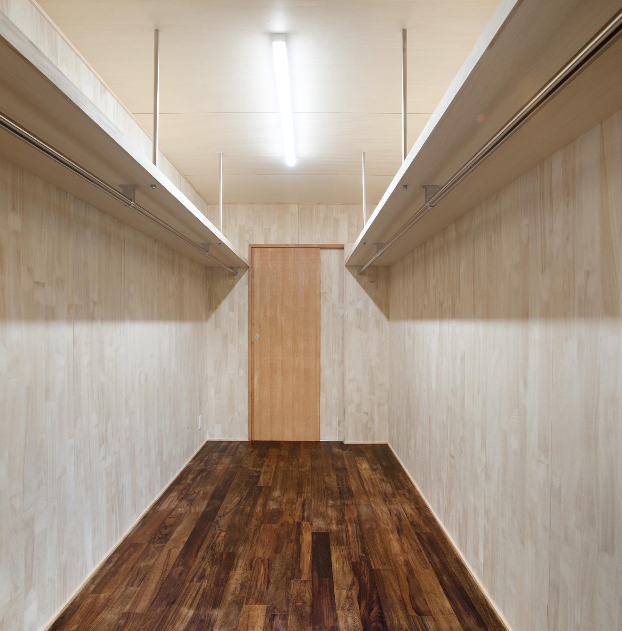 人が中を歩ける程のスペースがある収納で、そこで身支度することも可能。