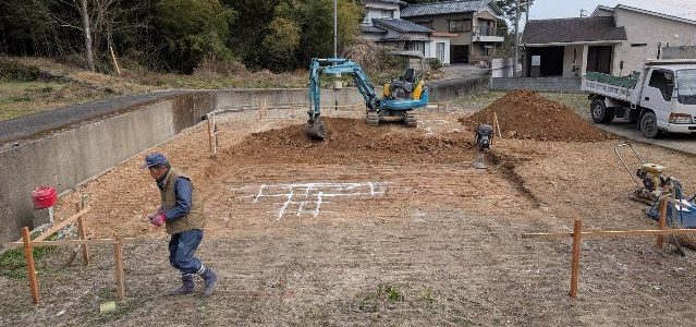 始まりは基礎工事から 2026-01-22 施工現場日誌 いよいよ始まるS様邸。 ことの始まりはまず、建物の位置決めからです。 ”やり方をあげる”と言います。 建物の位置、高さを正確に出していきます。 幸津監督の第一の仕事です。 この基準をもとにすべての始まりとなります。 間違えば大変です。…