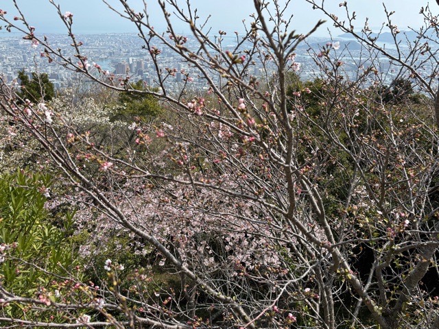土曜日の晴れわたる朝、バイクで眉山山頂までトレーニング。