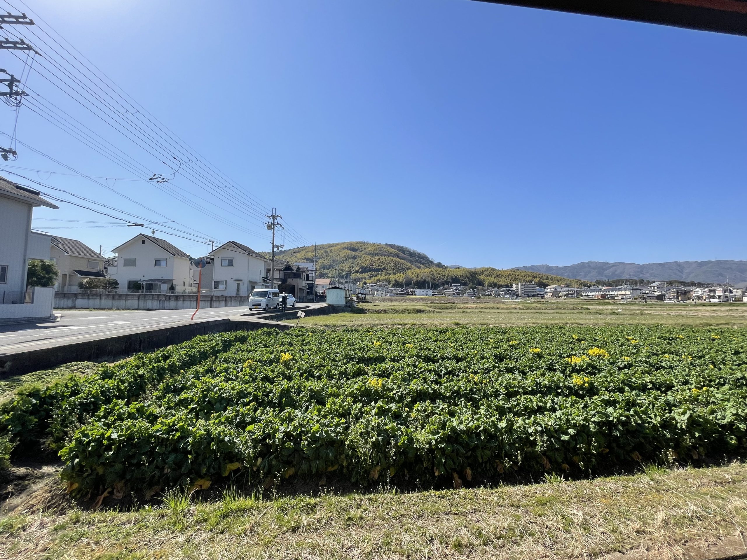 まったくの田舎風景。まわりは山と畑に囲まれています。