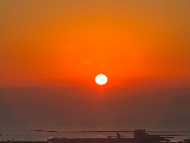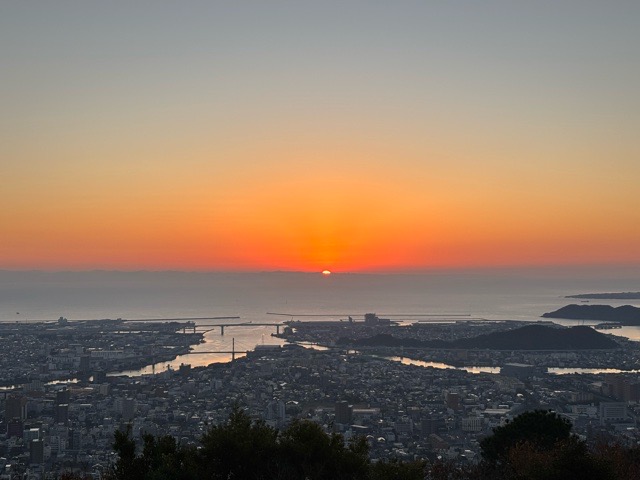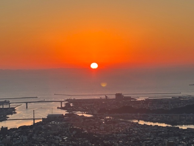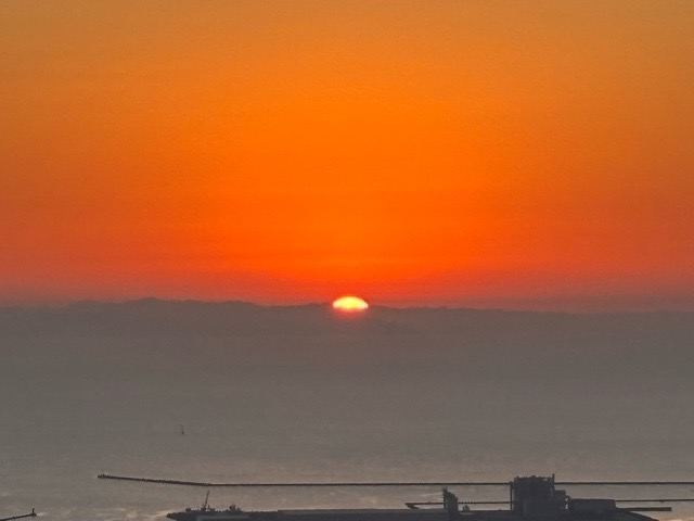 次第に色濃くなり朝日が顔を出しました。