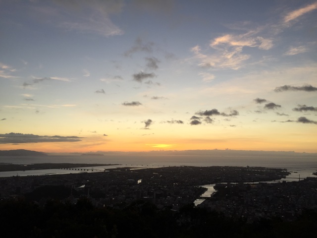日の出に合わせて眉山山頂を目指して家を出ます。
