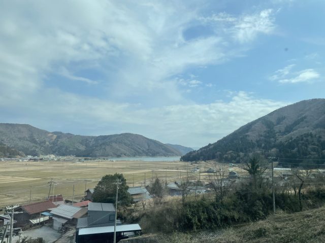 福井へは大阪駅からサンダーバードにて約2時間、途中琵琶湖の横を走ります。