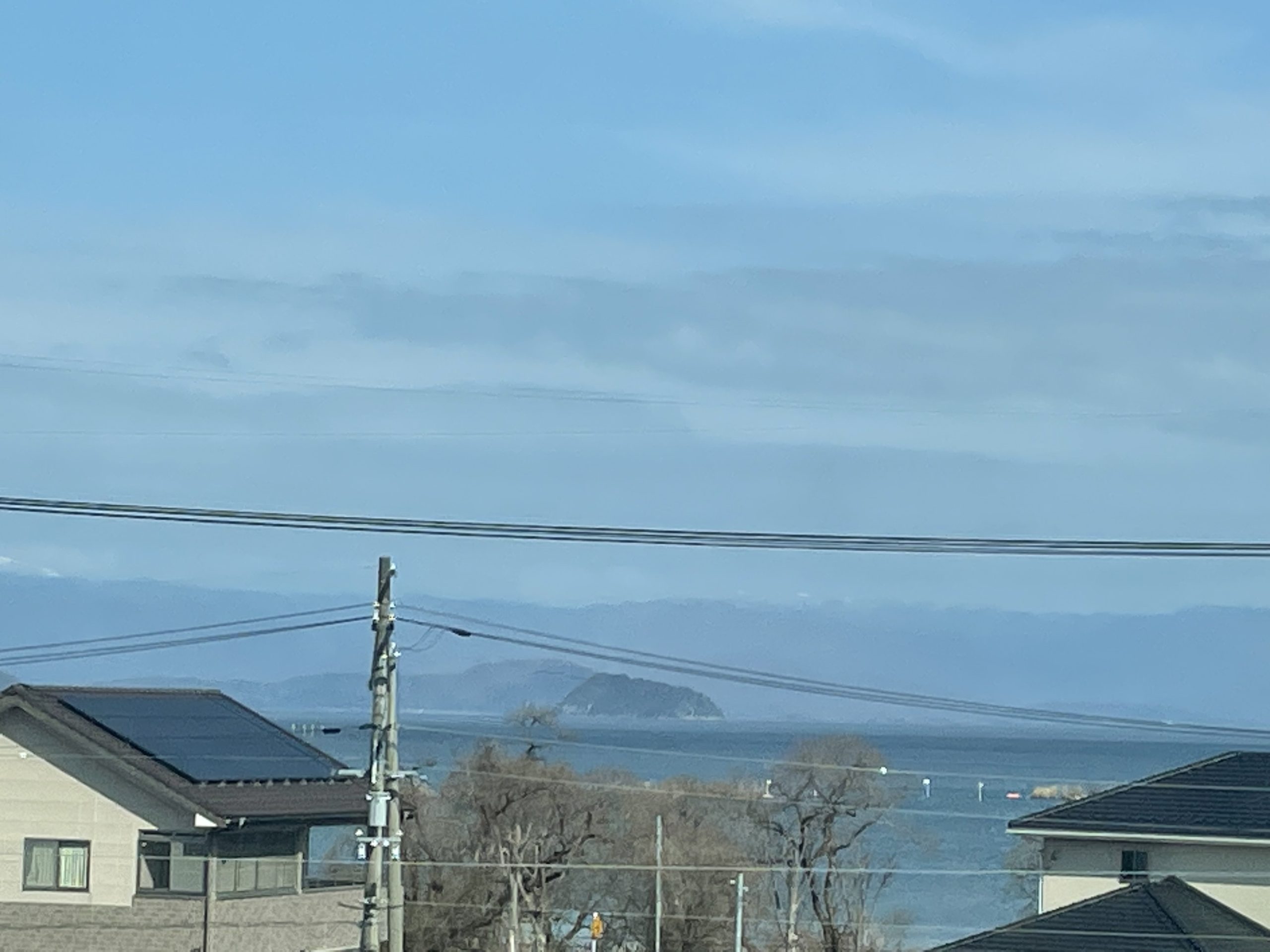 向こうのほうには竹生島が見えます。
