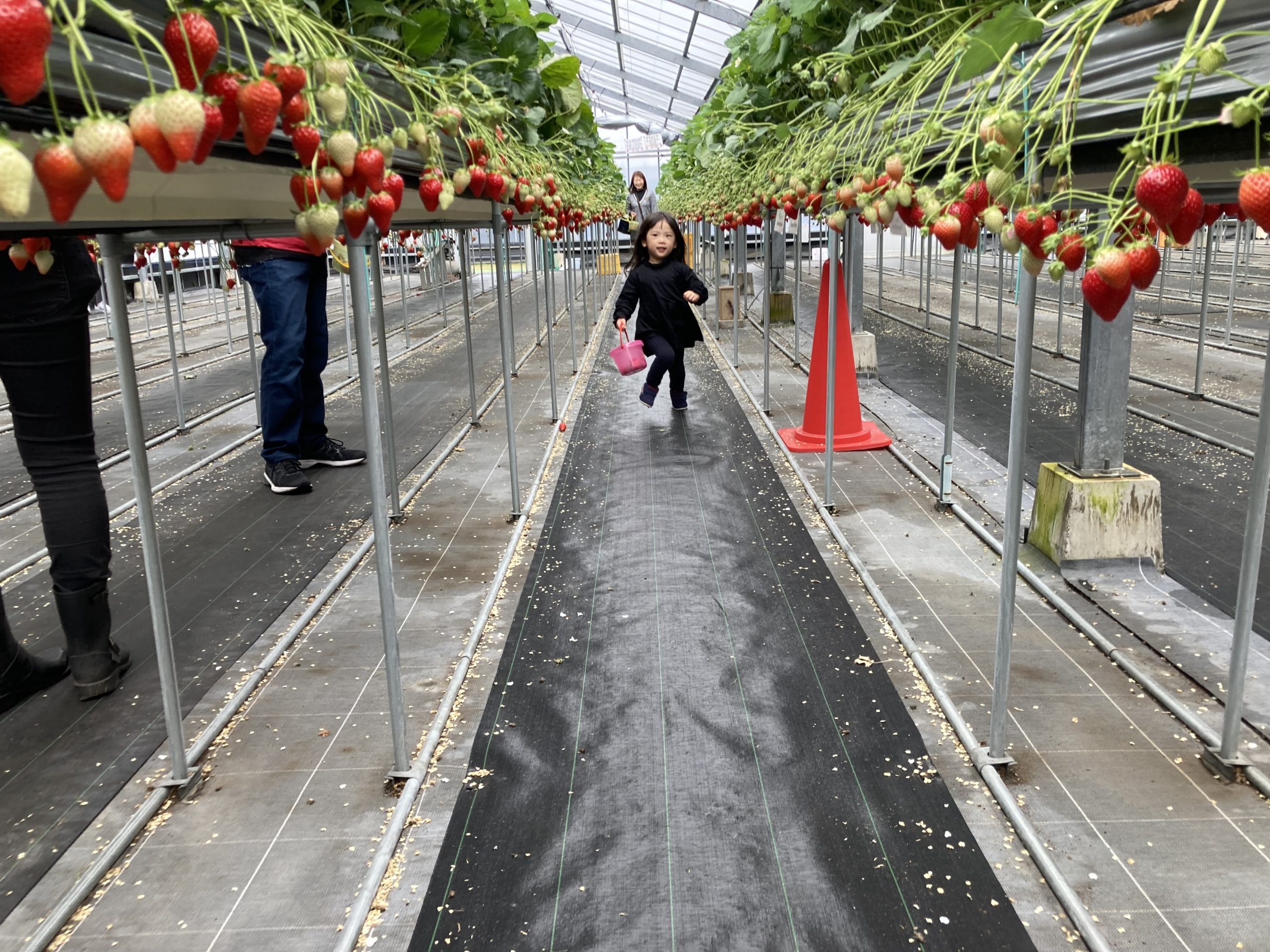 子供の目線で立ってみると、ずら~っとびっしり並んだイチゴが大迫力でした。