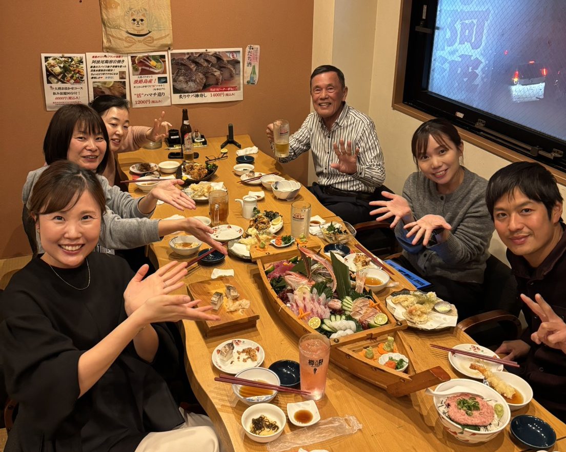 夜は皆で食事会。社長おすすめの活魚水産にて。