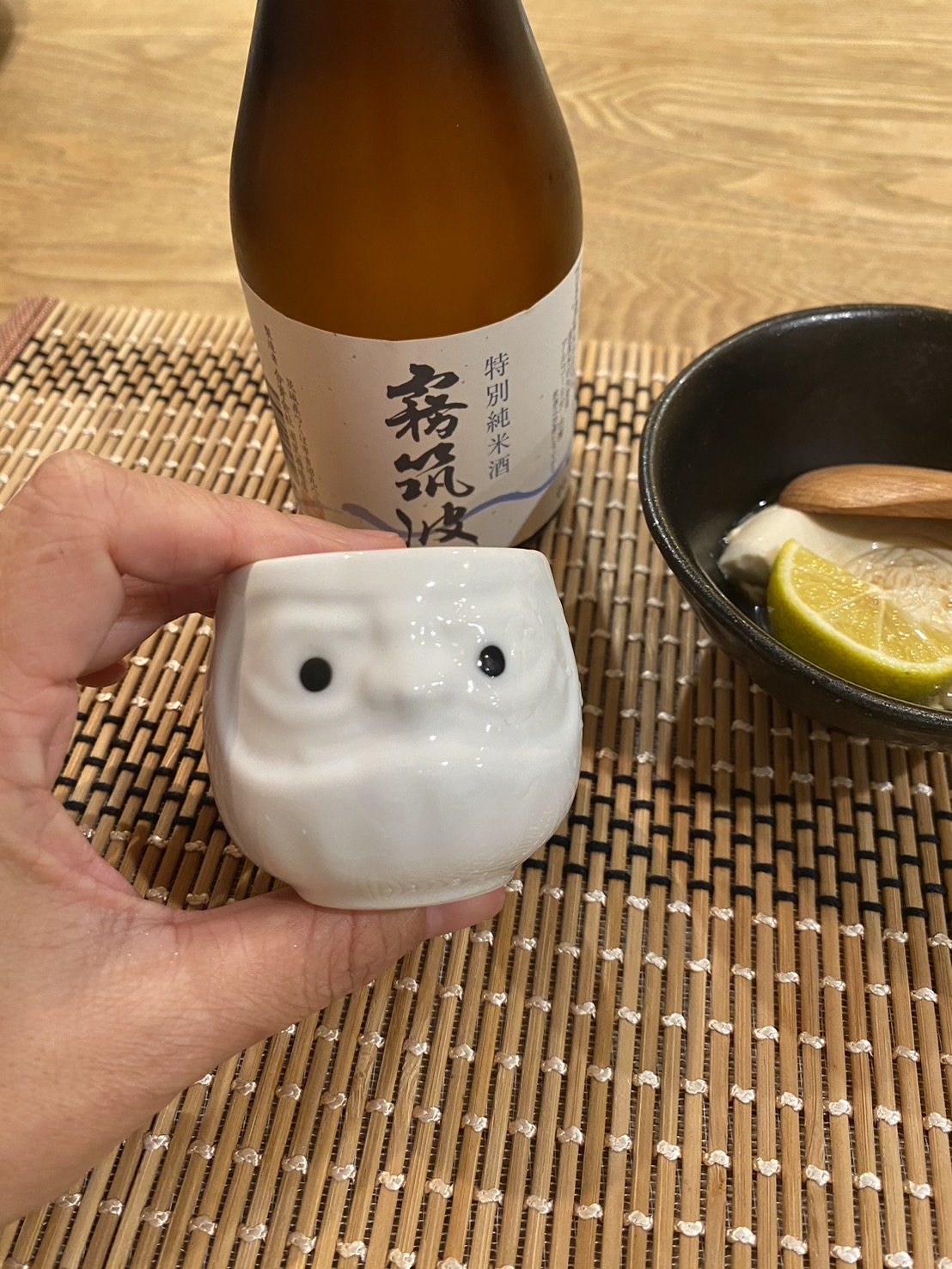 このおちょこ、だるまなんです。この前久世福に寄ったときにばちッと目が合って衝動買いしました。