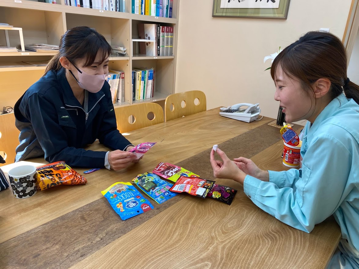 同じくグミ好きの野田とグミ談議に花が咲いていました。(二人とも幸せそう♡)
