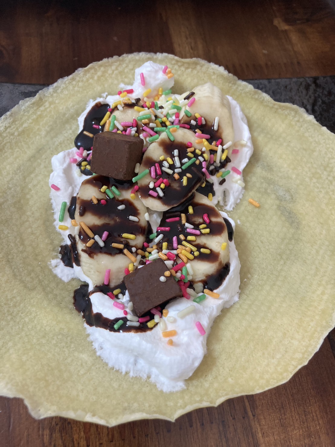 これは「チョコバナナ、メルティキッスのせ」 です。