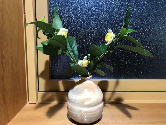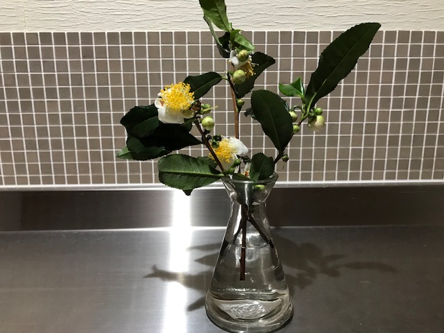昨日は早起きの主人が朝市でお茶の花??を買ってきてくれてました。