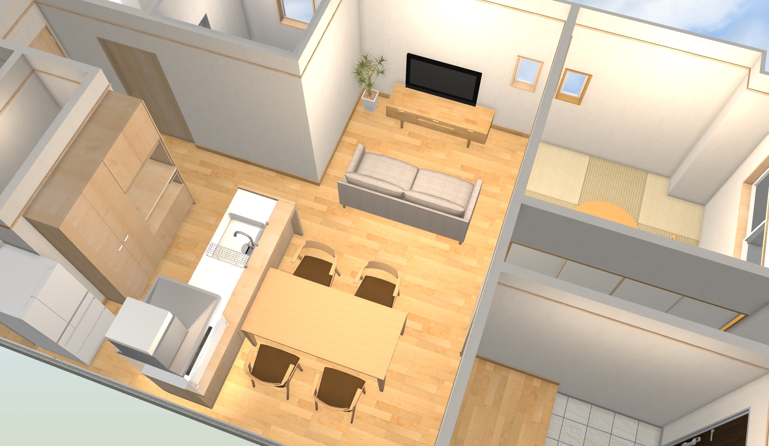 リビングから玄関、和室、寝室、水回り、すべてのアクセスが可能となっています。