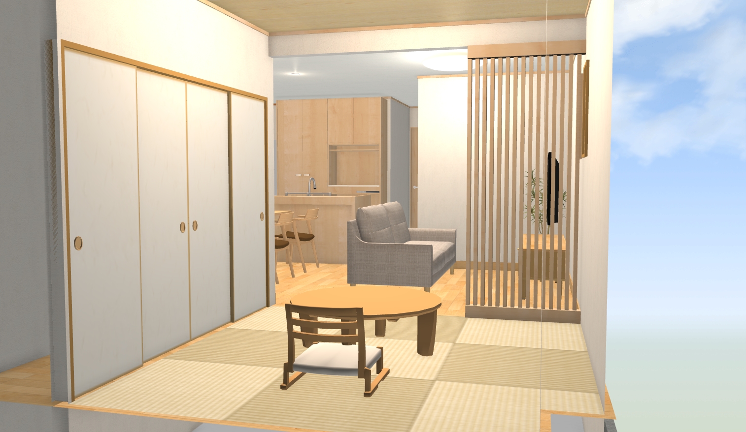 和室を設けて落ち着いたリビングに。