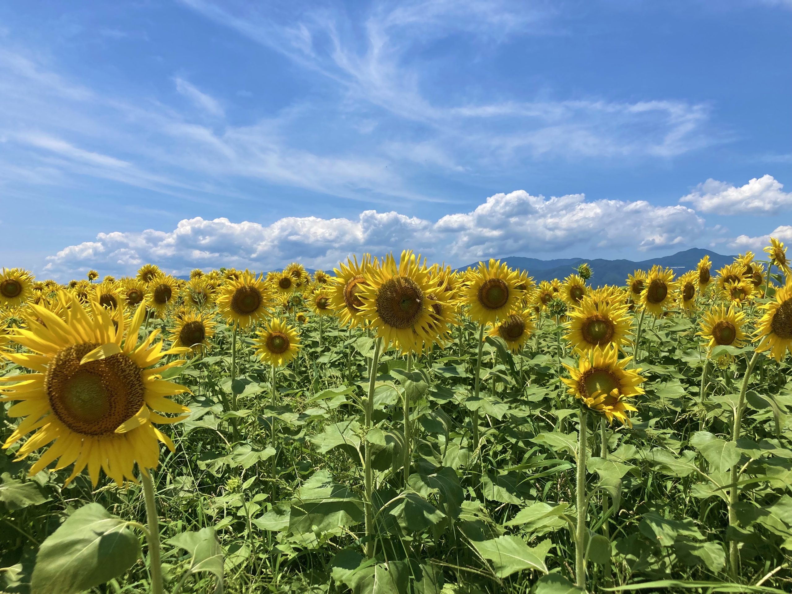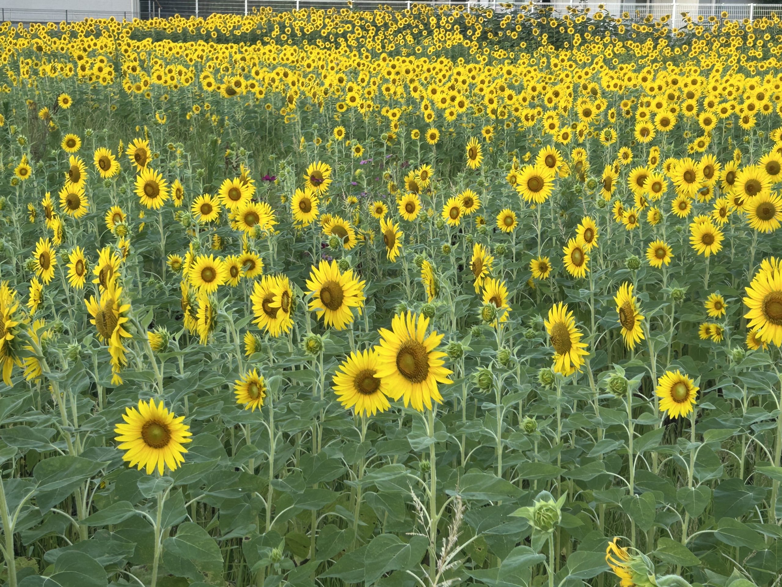 先日通りかかった近所の畑に、ヒマワリが沢山咲いていて見とれてしまいました。