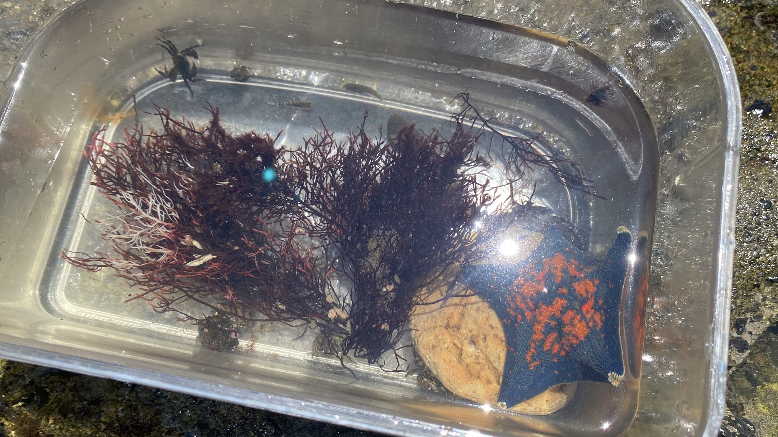 魚も3匹、ヒトデ、カニ、ヤドカリ、イソギンチャク。ウミウシが今年は見られなくて残念!