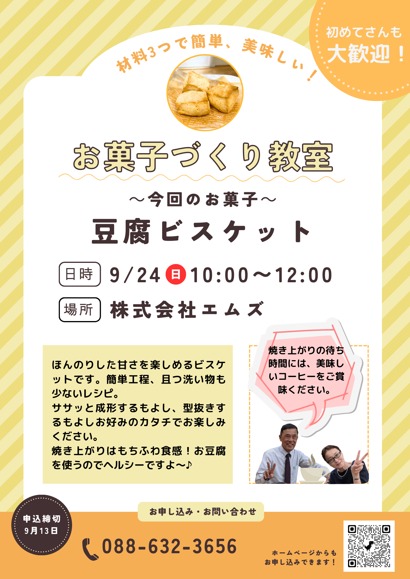 【予約制】お菓子づくり教室~簡単ヘルシ~な豆腐ビスケット~