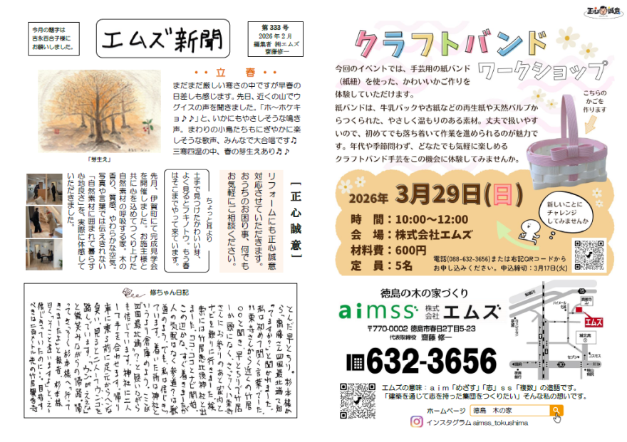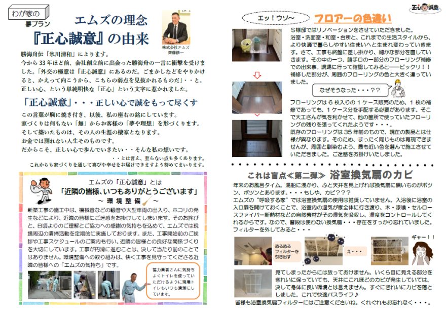 エムズでご縁をいただいたお客様にお役立ていただきたいとの願いを込めて、毎月手づくりの「エムズ新聞」を発行しています。