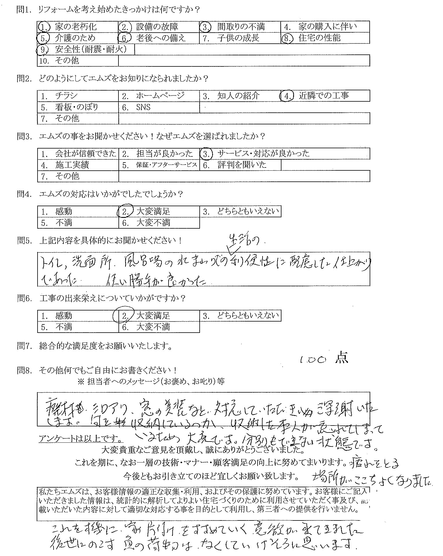 (浴室改装工事の他にも)廃材処分やシロアリ処理、窓の美装など対応していただき深謝いたします。