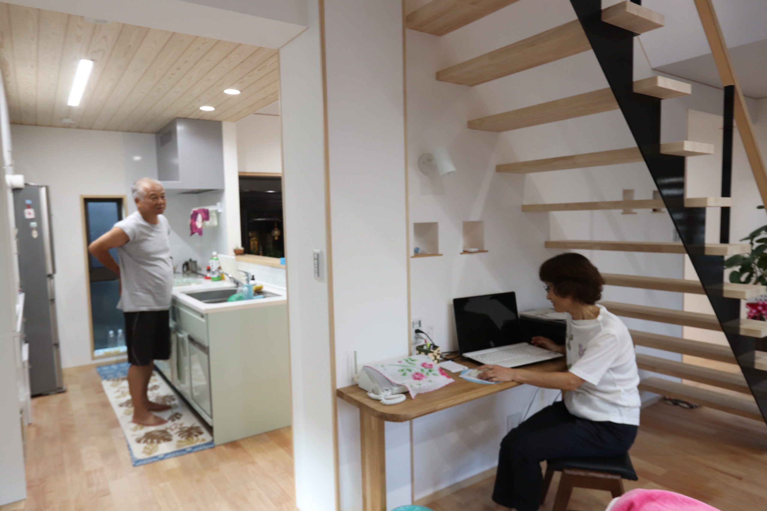 奥さま:陽当たりのいい和室が普段は襖で仕切られていたから、北側のキッチンやダイニングはいつも暗くて。これがどうにかならんかなと思っていたら、襖をとっぱらって続き間にするプランを社長が提案してくれて。キッチンとの間の壁は厚いコンクリートで仕切られていたので、壁は残したまま小窓を空けたらどうでしょう、と。それに心を持っていかれました(笑)